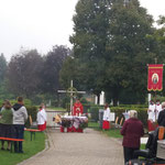 Abstand halten - so lautet das oberste Gebot in Corona-Zeiten. Deshalb gab es im Pfarrverband schon einige Gottesdienste im Freien. So auch am 20. September in Böbing. Eigentlich sollte an diesem Tag das 50. Jubiläum unserer Kirchenorgel gefeiert werden. Stattdessen wurde das Fest des Hl. Georg nachgeholt, dass wegen Corona nicht stattfinden konnte.